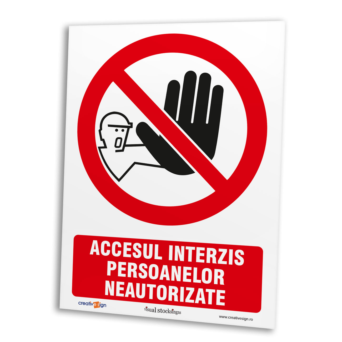 Caracteristici: : formă rotunda, pictogramă neagra pe fond alb , margine și bandă diagonală roșii, partea roșie acoperă cel putin 35% din suprafată.