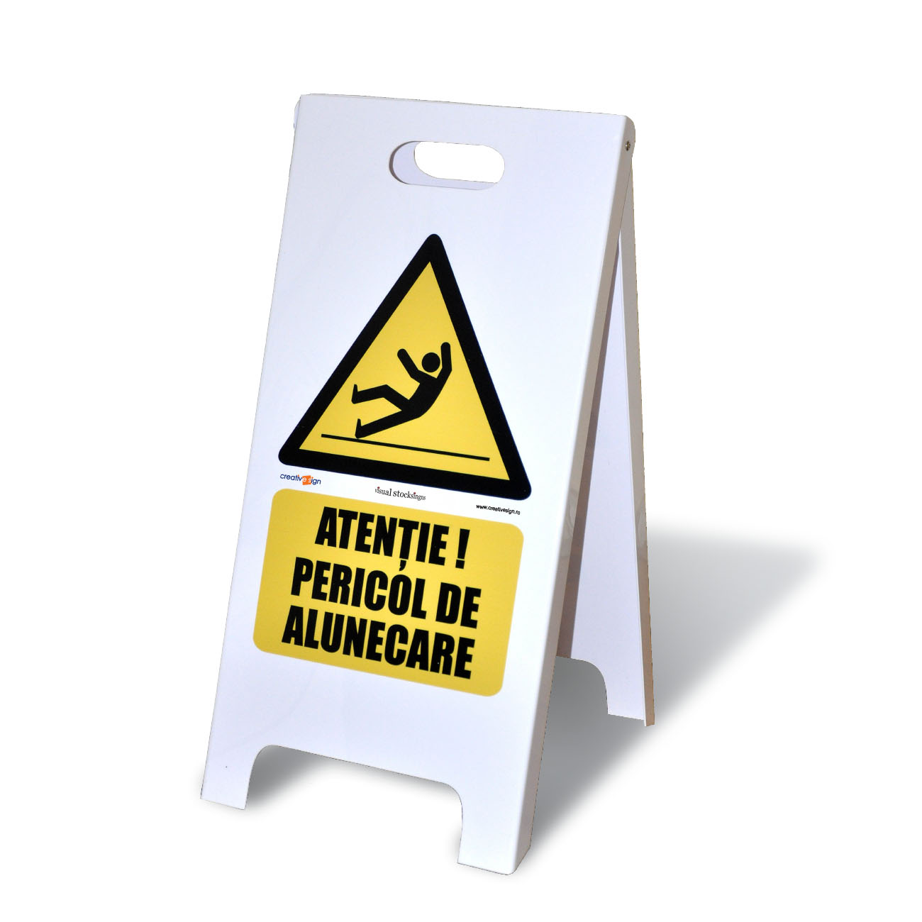 suprafață lucioasă, rezistență sporită la impact, la intemperii, la agenti chimici și la coroziune. Utilizare: Indicatorul trebuie pozitionat astfel incat fiecare persoana sa fie avertizata de riscul de accidentare datorat unei suprafete alunecoase.
